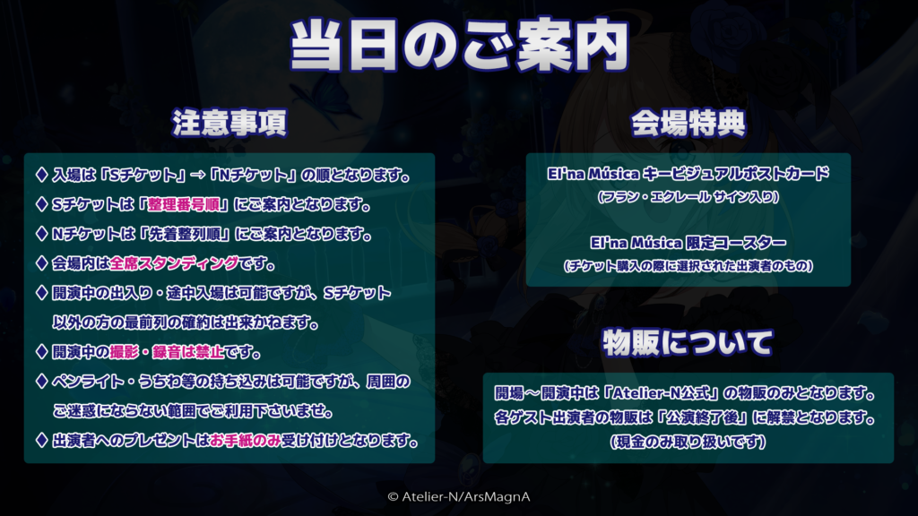 注意事項・会場特典・物販 etc